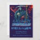 Skräckinjagande Halloween-fest inbjudan med en skrämmande dödgrimma som håller en blodig yxa. Skräck, vuxen.