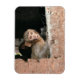 Rektangulär fotomagnet av en skrämt apa med stort ögon tittar som om det skräms av något eller som om det plötsligt minns något.