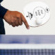 Skrämt sköldpadda Gömmande i hans Snäcka Pingisracket