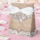 Burlap Rustic bröllopsaffär med vit ribbon och elfenbensformad snöre. För temat vintage eller bröllop.