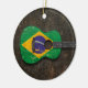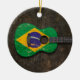 Denna unika design presenterar en gammal akustisk gitarr med flagga av Brasilien målade på till förkroppsliga. Sexna stränger gitarren har en åldrig och sliten look och täckas med skrapor och scuffs som ge det en väl använd känselförnimmelse med raddapersonlighet. Denna stilfulla design är perfekt för musiker och musikälskare som önskar att visa av deras brasilianska pride.
