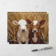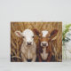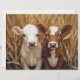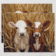 En charmerande bild av två nyfikna ko-kalvar som stod mitt i ett högt, gyllene kornfält under blå himmel. Denna spännande jordbruksplats ger en känsla av lugn och värme på landsbygden, perfekt för projekt som drivs av land eller mysigt jordbruksdöd.