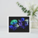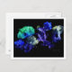 Skraschade blommor, design, svart bakåtglödande vykort
