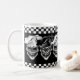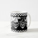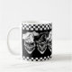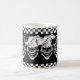 Dricka ditt morgongift i denna coolan och den roliga den skratta skallekock muggen för kaffe. Denna trio av hård-hövdad, yet lycklig kockdöskallar, egentligen pop ut mot den svart bakgrunden, med svartvita rutiga paneler. Customizationverktyg låter dig ändra färgen till en av dina primaa och resize bilder till passformpersonligtext. Tillgängligt i olik stilar, denna är ett roligt, och den unika gåvan för den utöva kocken, den sous kocken, konditorn, hemkock, fodrar kocken eller någon med en passion för att laga mat! Besöka www.zazzle.com/thechefshoppe för att se mer kyla kulinarisk themed döskallar.