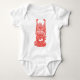 Röd skratta den Buddha trä-cuten stil avbildar med höjd händer.