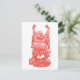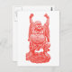 Röd skratta den Buddha trä-cuten stil avbildar med höjd händer.