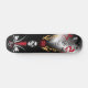 Skateboarddesignen med skallen och den uppochnervända kronan, flammar, pilar och lilla skateboardingfigurer. Läser också "trummaskridskon" med BS-logotypen.