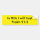 Gult stötfångare med Psalm 91:2 och Ichthus (den hemliga symbolen Tidigt Christians brukade hitta varandra och ställe av gudstjänst) påtvingad "Him". Om du vill ha fler kristna eller andligt motiverade och inspirerande artiklar och gåvor kan du kolla vår "Andlig Awakening Collection". Om du vill ha fler klistermärken kan du checka ut vår samling "Just Bumper Stickers". Båda samlingarna finns i vår BsApparelPlus-butik på Zazzle. Tack för att du shoppade med oss!