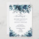 Den här romantiska, rustiska blommigtens kallelse till ett bröllop innehåller en droppe blommigt, med den roliga eleganten, modern inbjudningstext från stil med handskrivet manustypografi. Baksidan av inbjudan har en marin blå struktur som är dekorerad med blå blommigtar. Inbjudningskort för Elegant av upphovsrätt, alla höger reserverade.