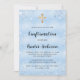 För att bekräfta, fira en pojke. En blå, fingerad, metallisk tittar bakgrund. Dekorerad med blåfaux glitter stoft. Anpassa och lägg till namn och detaljer. Namn och bekräftelsen skrivs med ett handskript i stil