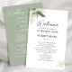 Öka din bröllopsdag med våra ceremoniprogram i elegant bröllop. Med klassiskt kalligrafiskt skript och en vackert utformad serviceordning visar dessa program en delikat vattenfärgsdesign för persikofärgad blommigt med botaniskt grönt löv - perfekt för vår, sommar eller fallbröllop. Snyggt- och trendig-typografin kombinerar klassiskt traditionellt grönt inslag och lägger till ett luft av tidlös charm. Innehåller en tänkvärd välkomstlista för bröllop som brev och en brudens sida för att ge behålla till gästerna som har informerats och blivit glada. Gör ceremonin till en minnesvärd upplevelse med denna sofistikerade och personlig beröring. Idealisk för dem som kärlek blandar klassiskt elegans och modern design.