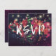 Bröllop OSA Svara vykortsmallar - Burgundy Marsala Red Watercolor Blommigt med String Ljus och Elegant Script på Lila Gnistra Bokeh Ljus Background. Alla textstorlekar i Stil, Färg kan anpassas efter dina behov.