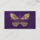 En elegant djup lila som dekoreras med en faux guld-fjäril. Lila färg är ojämn. Anpassa och lägg till ditt namn på framsidan. Tillbaka: Mallar för Ditt namn, din titel, mobilt nummer, e-post och webbplats adress, QR-kod. Perfekt för kvinnliga företagare, konsulter, företagsägare.