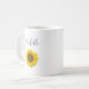 Personlig Enkelt solrokaffe mugg med vit bakgrund. Svart skripttypografisk text kan anpassas med din egen text. En elegant land-blommigt för att njuta av din favoritdryck i hetten.