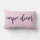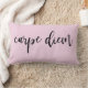 Elegant lumbar dekorativ kudde i rosa med en text i eleganten som säger karpediem, eller beslagta dagen.