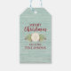 En kuststrand tog upp märkrn med gåvor. Gift-märkrn dekoreras med söt och dollar och jullöv. Anpassa det med ditt namn. Baksidan av märkrn är rött, rustiskt trä struktur. Designad av Blackberry Boulevard.