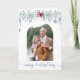 Ett enkelt och elegant julklapp med ditt foto och personlig hälsning. God jul är skrivet i elegantens skripttypografi på framsidan och du kan anpassa meddelandet inuti. Fotografimallen visningar bild i en bågform, ramad med vattenfärgspuntisen och vintern bladform i nyanser av grått- och tidvattengrönt.