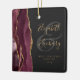 Den här eleganten har en modern dekoration med en burgundröd vattenfärgad agatdesign som trimmas med faux guld glitter. Anpassa enkelt guld-färgad-texten på en svartvit bakgrund, med namnen på bruden och skum i den vita handskriftssymbolen över ett stort grått-ampersand. Orden "Första jultomten" visas i serieteckensnitt tillsammans med anpassadet.