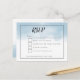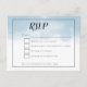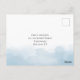 Ett bekvämt sätt för dina gäster att få OSA till dina inbjudningar är genom vykort med dina adress-uppgifter redan där, så att de bara kan fylla på framsidan och skicka tillbaka den till dig. Den här summerade designen har klassisk svart typografi och en enda linje gräns på en ljusblå vattenfärgsbakgrund som löper längs den övre kant på framsidan och längs grund kant på baksidan. Personligen är enkel och texten färg kan ändras om du så önskar