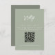 Minimal Neutralt Sage Grönt Handskriftlig Bröllop OSA-skriptkort med anpassningsbar QR-kod och URL-adress för att göra det enkelt för dina bröllop-gäster att svara. Använda verktyg om du vill ändra färgen på bakgrunden eller texten eller justera placeringen av ett inslag som är utformat. Matchande bröllopsinbjudningar är tillgängliga i den här bröllop-pappersamlingen.