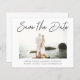 Budget Spara datumkorten med modern handskriven text. Fullständigt mångsidig utmärkelse för självbetjänt stil. Skripttexten är en platt bild som inte kan redigeras, men den kan flyttat, storleksändras eller roteras för att passa perfekt med fotot i avancerat anpassningsläge. All annan text inslag kan redigeras fullständigt.
