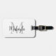 Den här snyggten bagagetaggen har ett monogram för elegant och namn i skripttypografi. Det är lätt anpassade.