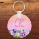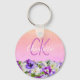 Skript för Monogram rosa lila blommigt pansies na Nyckelring