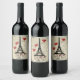 Skript för Paris, Eiffel Torn och Red Heart-ballon Vinflaska Etikett