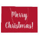 Behållan är enkel med den här snygga röda och vita presentpåsen med God jul i vit typografi / text. Du kan också ändra den genom att enkelt anpassa den genom att ändra texten. Ändra färg med ytterligare ett steg genom att använda designredigeraren verktyg! Håll dem på julkort, gåvor eller ge dem till dina favoriter! Perfekt för din festgåva som omsluter den här julhelgen. God jul! Om du behöver hjälp med att anpassa, matcha produkter eller ett anpassad design kontaktar du mig via zazzle-chatta eller e-post: ursuladawnmoon@gmail.com