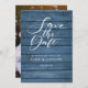 Skript för Rustic Blue Wood Elegant Photo Bröllop Spara Datumet