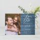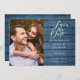Skript för Rustic Blue Wood Elegant Photo Bröllop Spara Datumet