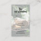 Ett affärskort för snyggt av spa med en genomskinlig utformning av vitt ram på framsidan och mer information om baksidan har en utformning av blommor, löv, olja och handdukar. Anpassa det här affärskortet till att vara unikt för dig.