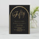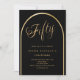 En elegant på 50-årsinbjudan. En svart bakgrund med en gyllene båge på framsidan.