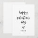 Detta enkla och snyggt svarta och vita valentinkort säger "glad valentindag" i avslappnad, modern manustypografi, tillsammans med en elegant som matchar hjärtat och en ställe som lägger till ditt namn.
