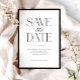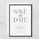 Skript för svartvit kalligrafi med enkel Elegant Spara datum har ett fet helfärgat gräns, omgivande modern text som innehåller kalligrafiskript.