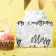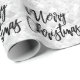 Detta glam, moderna pappra inslagningsformat, har ord "God jul" i svart, handskrivet kalligrafteckensnitt på en bakgrund mönster av vita faux-folier och glitter spegel-plattor.