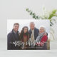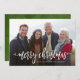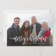 Modern helgdag-kort med frasen "God jul" i ett vitt handskrivet skript. Bilden visas bakom. Baksidan är nedtryckt grönt men kan ändras om så önskas. Ta helt enkelt bort grönten lagrar och markera ett färg i paletten eller användan för din egen hex-kod.