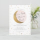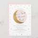 En inbjudan till söt, babydusch med guld star ram och måne med mjuk pastellskugga på vit bakgrund.