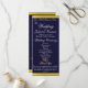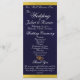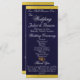 Den här romantiska designen har en elegant marin blå bakgrund med menyfliksområdet gräns, ceremonin i bröllop och tack på framsidan med bröllopsfest på baksidan. Finns i flera färg för temat bröllop. (Bandet simuleras i teckningen). Designat att samordna med "två skall bli en - Silver & Guld"-samlingen för Bröllop. Om du vill ändra information klickar du på "Anpassa". Om du vill flytta texten eller ändra texten storlekt, teckensnitt eller färg klickar du på "Klicka för att anpassa ytterligare"