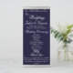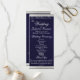 Den här romantiska designen har en elegant marin blå bakgrund med menyfliksområdet gräns, ceremonin i bröllop och tack på framsidan med bröllopsfest på baksidan. Finns i flera färg för temat bröllop. (Bandet simuleras i teckningen). Finns i flera färg för temat färg i bröllop. (Bandet simuleras i teckningen). Designat att samordna med "två skall bli en - Silver & Guld"-samlingen för Bröllop. Om du vill ändra information klickar du på "Anpassa". Om du vill flytta texten eller ändra texten storlekt, teckensnitt eller färg klickar du på "Klicka för att anpassa ytterligare"