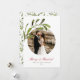 Ett vackert helgdag kort för att fira din första jul som gift par. I designen fanns ditt favoritfoto i en cirkelöppning, med vattenfärgen gren på mistletoe. Anpassa den röda kursiva skriptteckensnittsrubriken och signera mörk grönt. På motsatt sida finns mönster i vattenfärgsmistletoe grenar.
