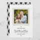 Snyggt Foto Spara datumkortet som innehåller ditt foto omgivet av ett gräns, under vilket orden "Spara datum" i en skrivmaskin som typsnitt och parets namn i skript i en mörk grått färg färg mot en gråvit bakgrund. Kortets baksida har överlappande benvit linjer mot mörkens grått-bakgrund. Anpassa den genom att ersätta platshållartexten och ersätta exemplet/platshållarfotot med ett eget foto. Om du vill ha fler alternativ som att ändra teckensnittet och det är storlekt/färg eller mellanrummet mellan brev klickar du på knappen "Anpassa". *Observera att Zazzle Watermark som visas i zoomförhandsvisningen INTE visas på den färdiga tryckta produkten. © Rosewood and Citrus