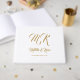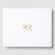 En elegant- och klassdesign som visar ett guld-formellt skriptmonogram och text på vitt.