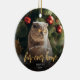Minneshögtidlighålla husets första jul i sitt nya hem med denna vackra moderna keepsaksprydnad. I texten står det "Första julen i mitt päls-i-hem" med ord "päls-i-hem" i fotfolie av elegant guld. Ersätt exempelbilden med ett foto av katten eller hund och lägg till namn och året i vitt sans serif-teckensnitt. Ett övertoningsfilter för mörk hjälper till att göra textpopup.