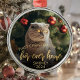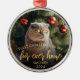 Fira ditt husdjurs första jul i sitt nya hem med denna vackra moderna keepsaksprydnad. I texten står det "Första julen i mitt päls-i-hem" med ord "päls-någonsin-hemmet" i fotfolie i elegant guld. Ersätt exempelbilden med ett foto av katten eller hund och lägg till namn och året i vitt sans serif-teckensnitt. Ett övertoningsfilter för mörk hjälper till att göra textpopup.