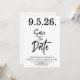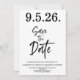 Den här Spara datuminbjudan baseras på vanligt svart och vitt färg. Om du vill ha en enkel inbjudan som berikats med det intressanta teckensnittet kan det vara perfekt för dig.