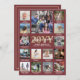 Vilket år att minnas! Skicka snyggt glatt hälsning och 15 av bilderna med ett helgdag för anpassningsbar 5x7-fotokollage. (IMAGE PLACEMENT TIP: Ett enkelt sätt att centrera ett foto exakt som du vill är att flytta det till skörd innan du laddar upp det till Zazzle-webbplatsen.) Texten i den här mallen är enkel att anpassa för att inkludera alla formuleringar som God jul, Glad helg, Säsonhälsningar, New Years Cheers osv. Burgundy Red och guld har formgivningen faux guld, handskrivet stil-manusgrafi, modern typograffamilj namn och år, och ett unikt fotorutnät på 15 kvadratbilder med skrivmaskin-typsnitt. På baksidan finns utrymme för skriva av ett personlig-meddelande eller det år som granskas. Familjen och vännerna kommer att visa elegantens anpassade kort i kärlek. Observera att guld är tryckt på färg, inte metallfolie.