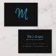 Skriptblå monogram på svart visitkort