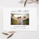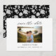 Elegant minimalist stil med kalligrafi-skript. Det finns en platshållare för parets speciella foto, baksidan har ett svartvitt blommönster.