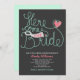 Anpassa det här moderna visuella Inbjudningskort för möhippan med handskrivna texter Här kommer Bride in mitt färg på mörkens grått-bakgrund.